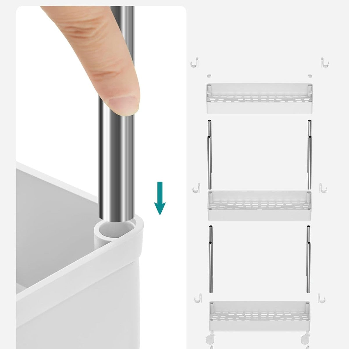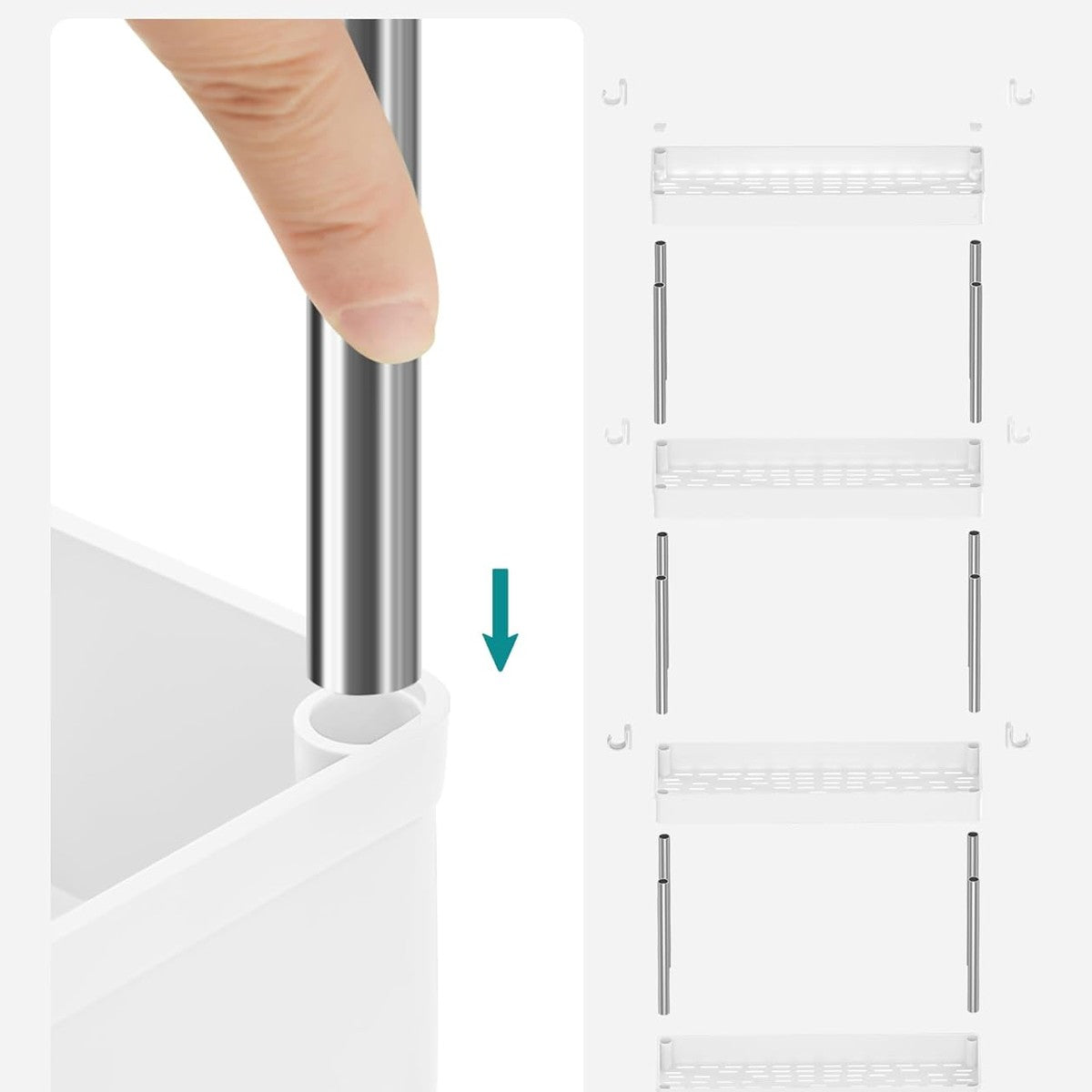 Täydellinen mausteiden, siivoustuotteiden, hygieniatarvikkeiden, pullojen, välipalojen ja kodin pientarvikkeiden säilytykseen kapeissa tai käyttämättömissä tiloissa.