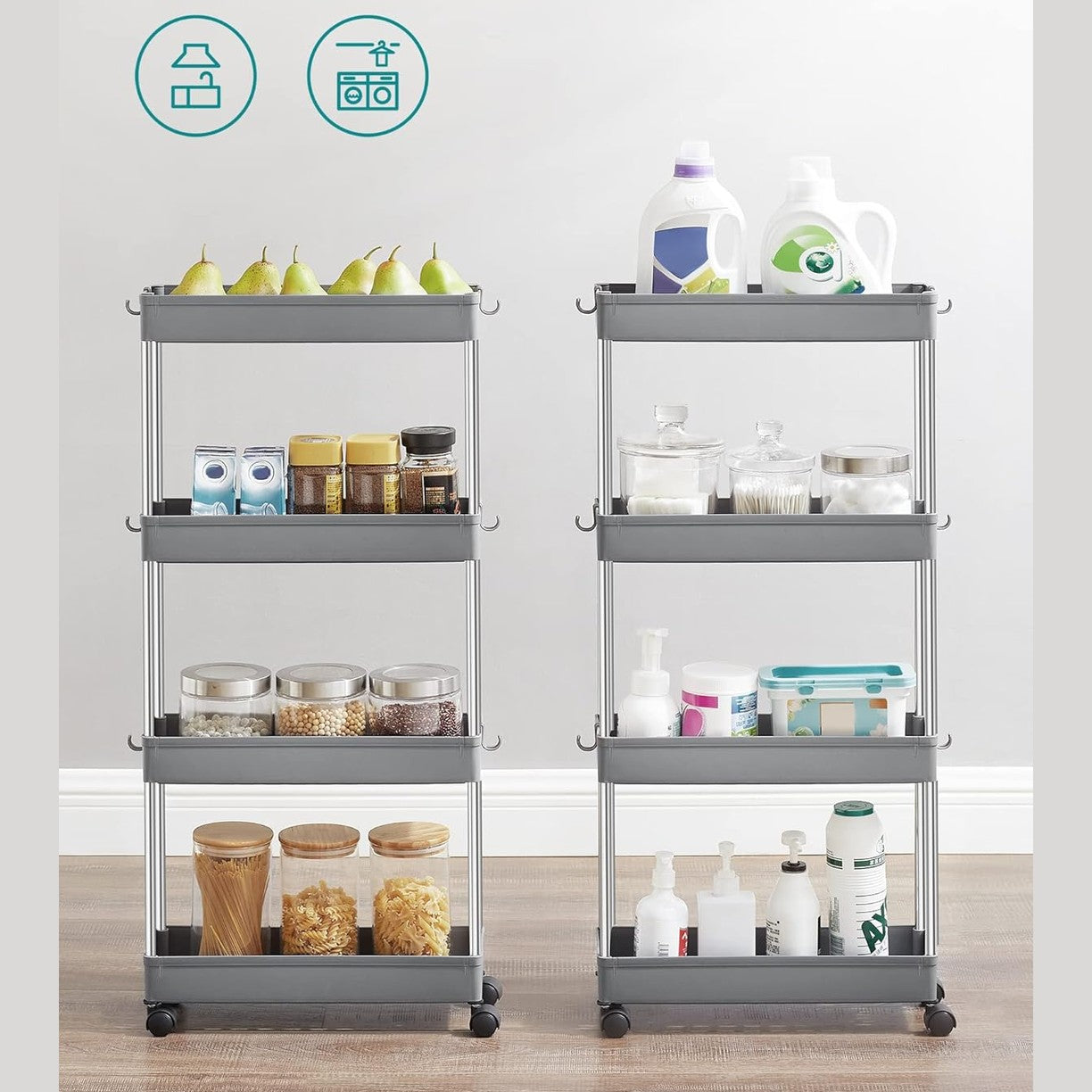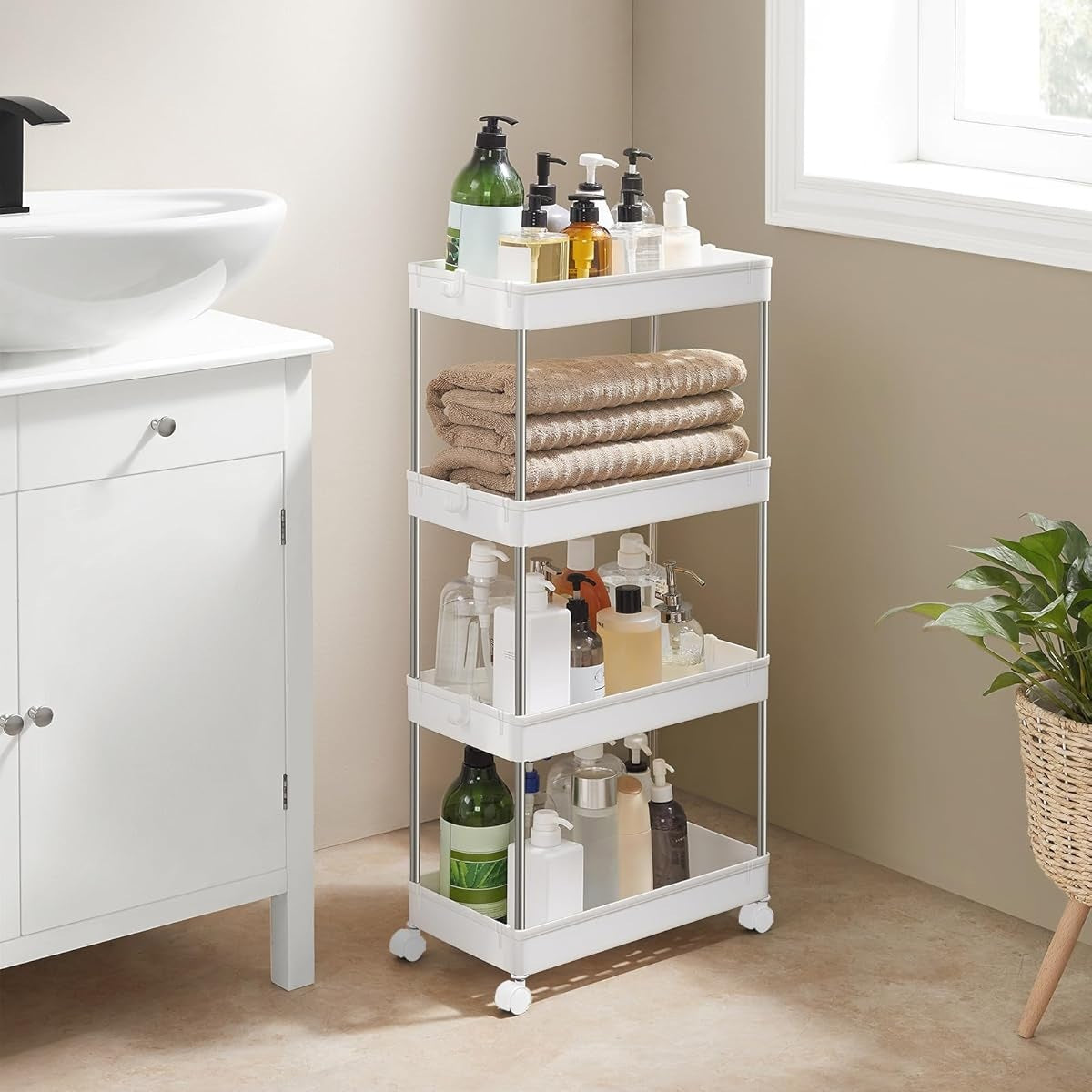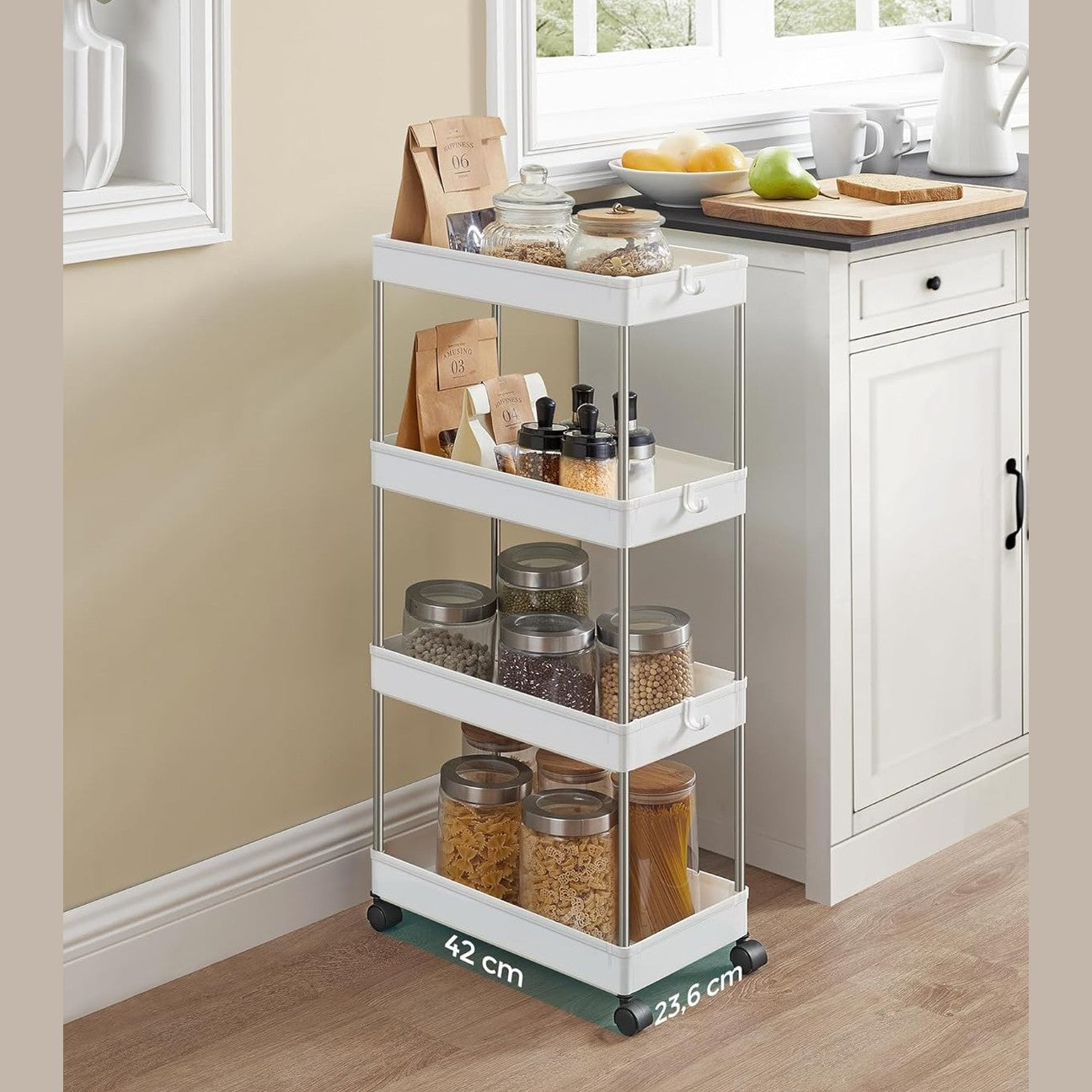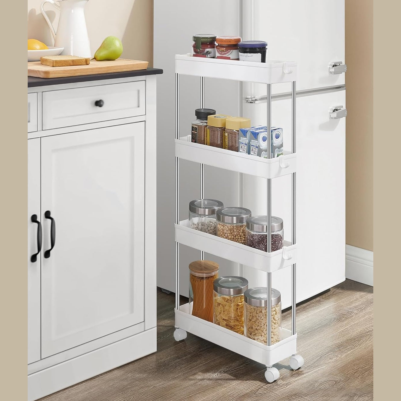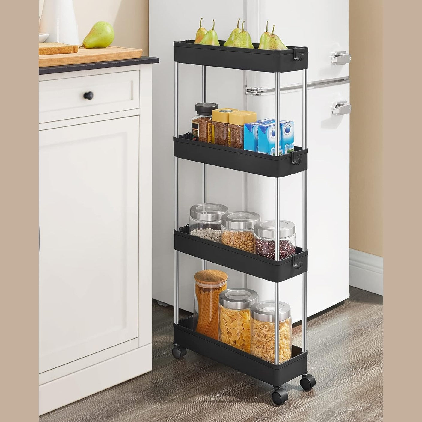 SONGMICS kapea 4-tasoinen säilytyskärry pyörillä – keittiöön ja kylpyhuoneeseen (40 × 12,5 × 86 cm)