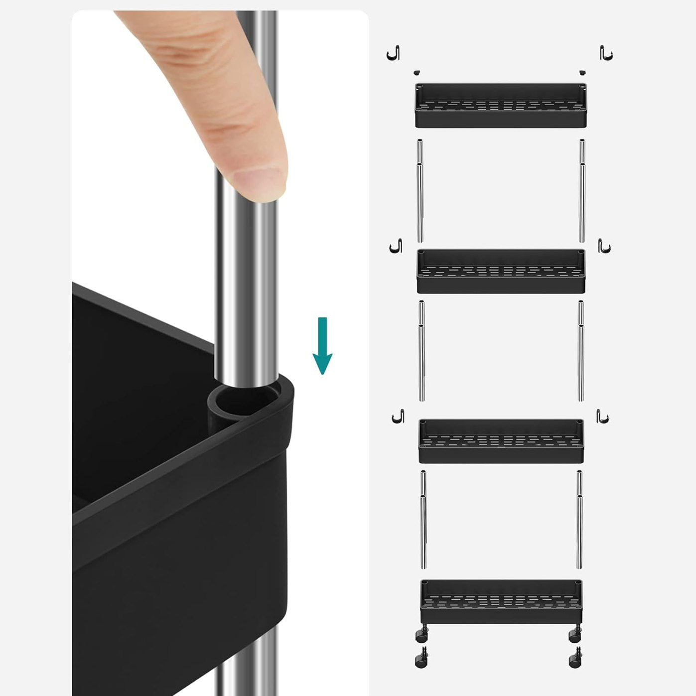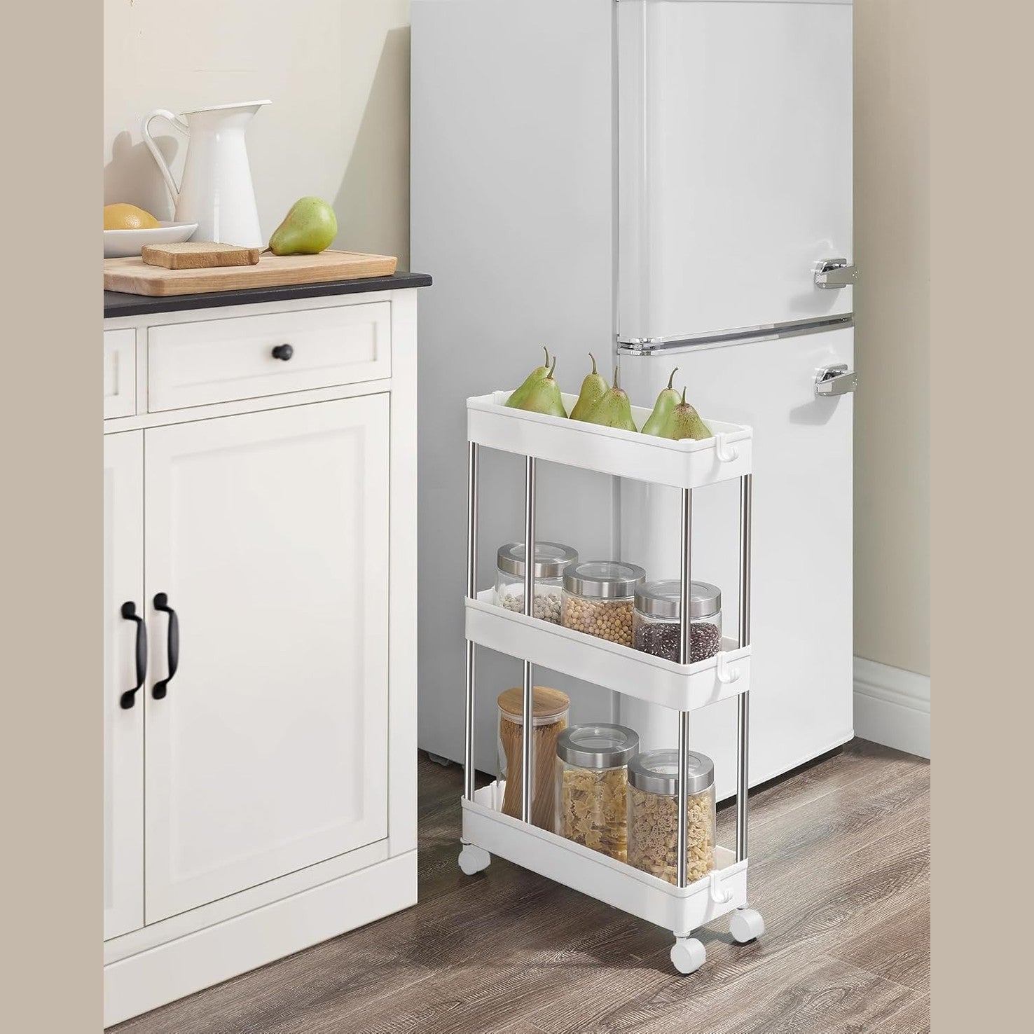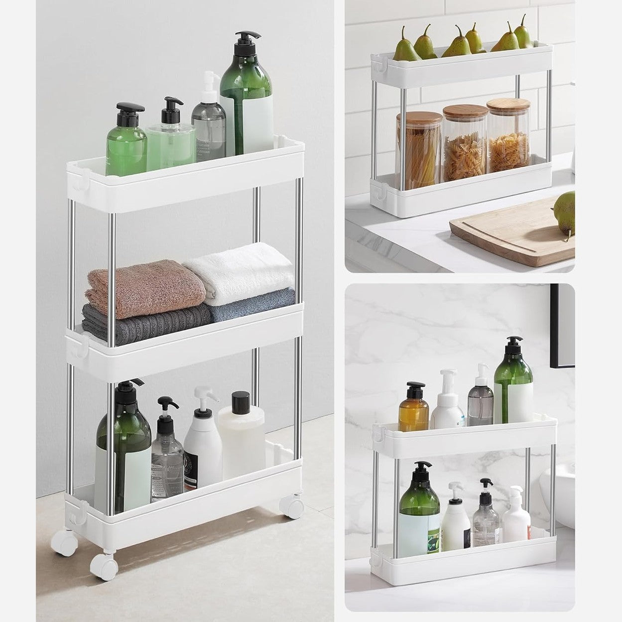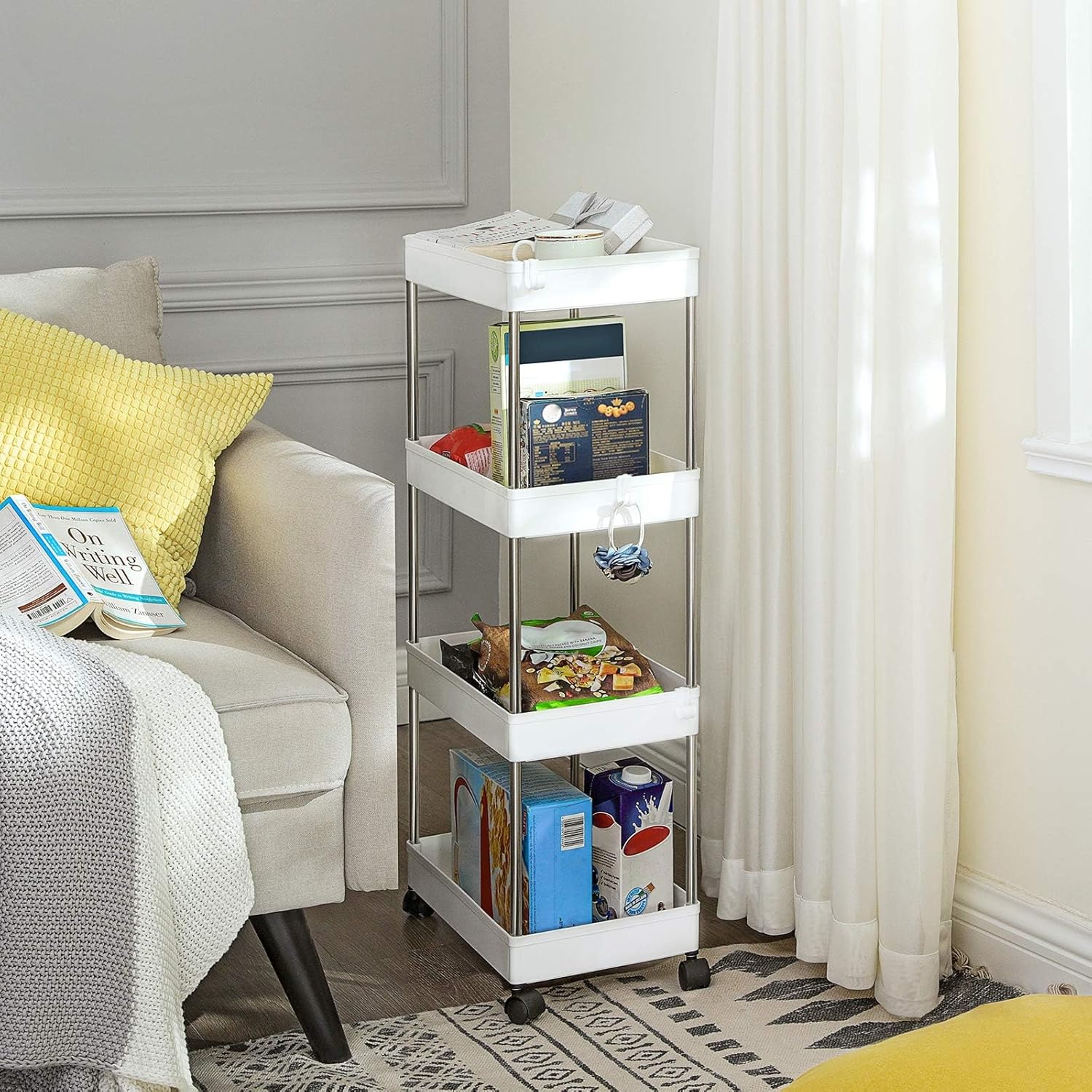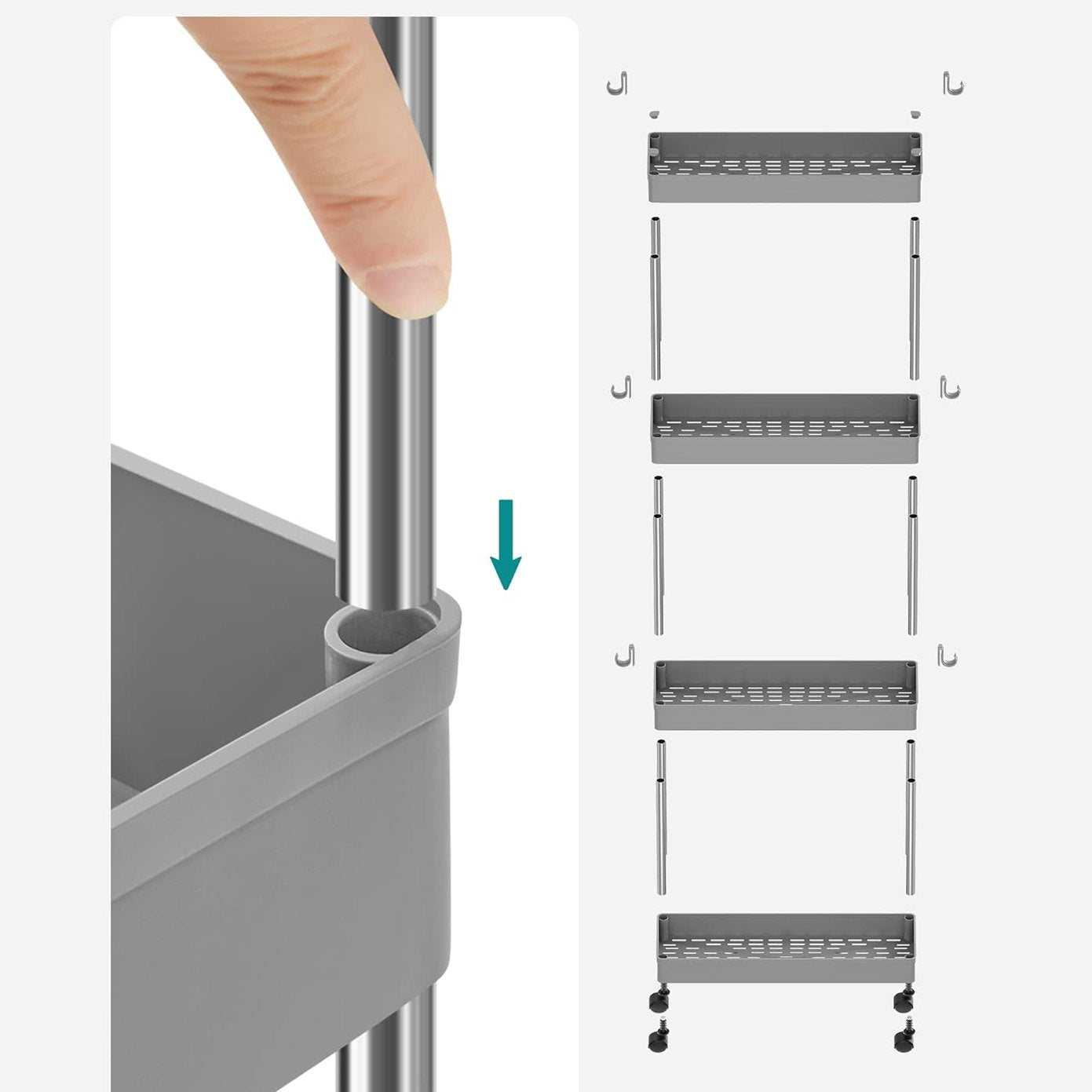 SONGMICS kapea 4-tasoinen säilytyskärry pyörillä – keittiöön ja kylpyhuoneeseen (40 × 12,5 × 86 cm)