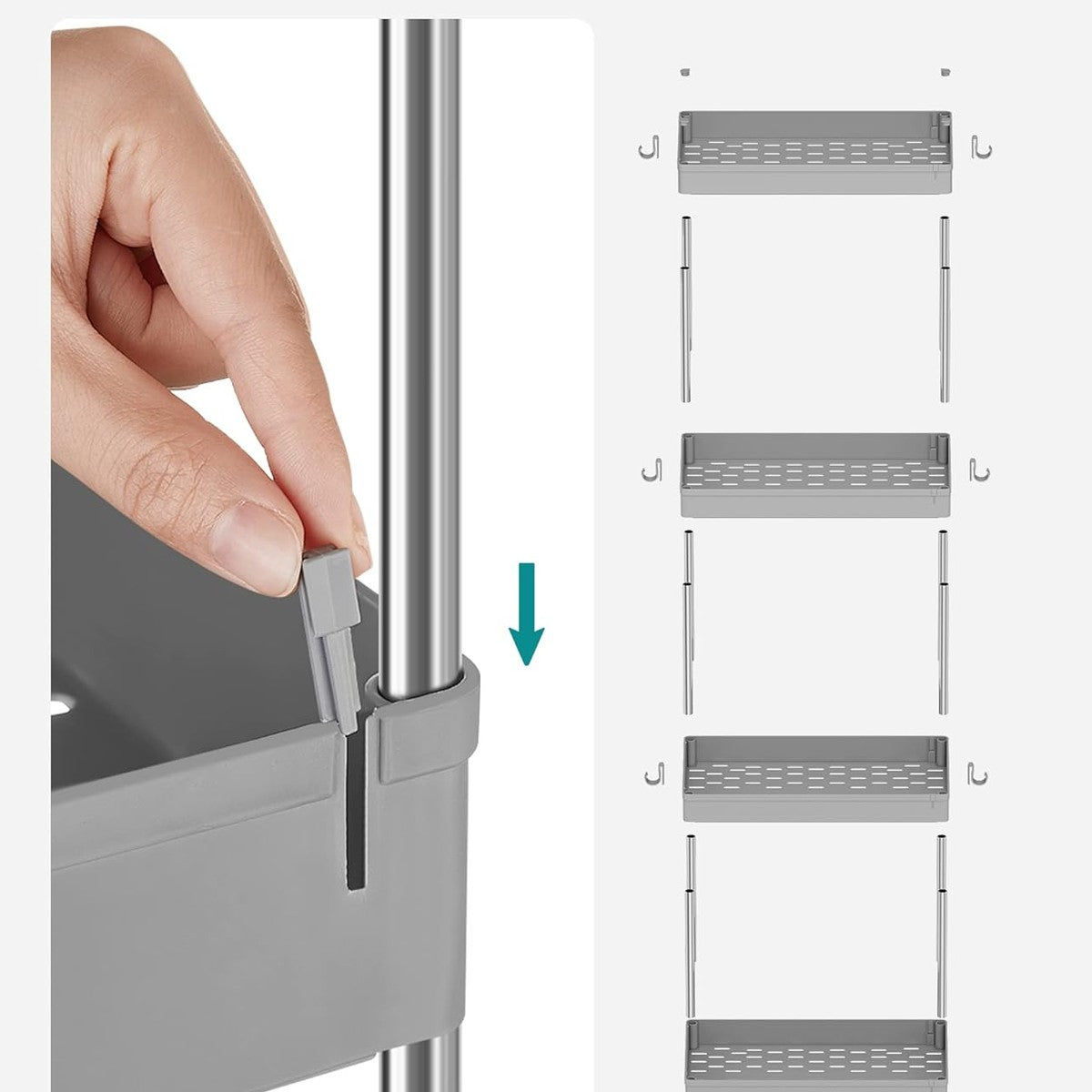 Jokainen hylly kestää jopa 5 kg, ja kokonaiskantavuus on 20 kg, kiitos vahvistettujen rautaputkien ja kestävän PP-muovin.