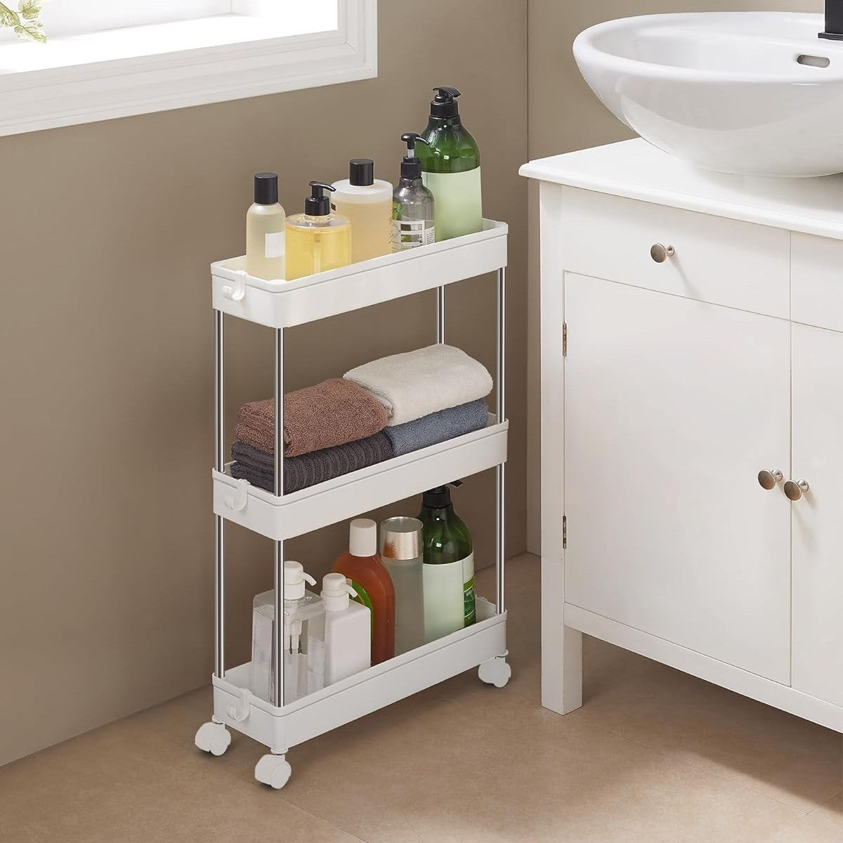 Kapea 12,5 cm muoto sopii täydellisesti ahtaisiin tiloihin, kuten jääkaapin ja työtason väliin, pesukoneen viereen tai kylpyhuonekaapin sivulle.