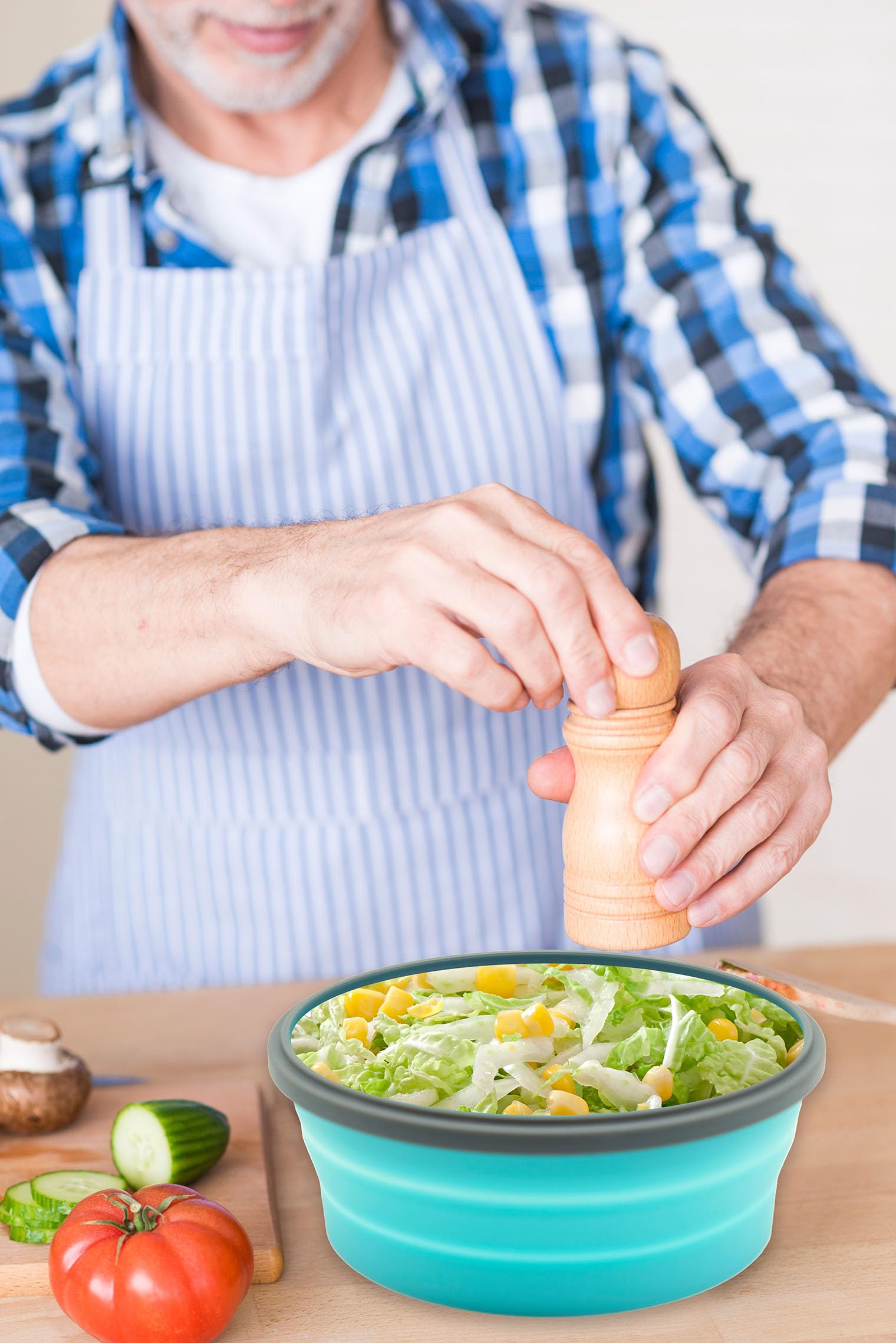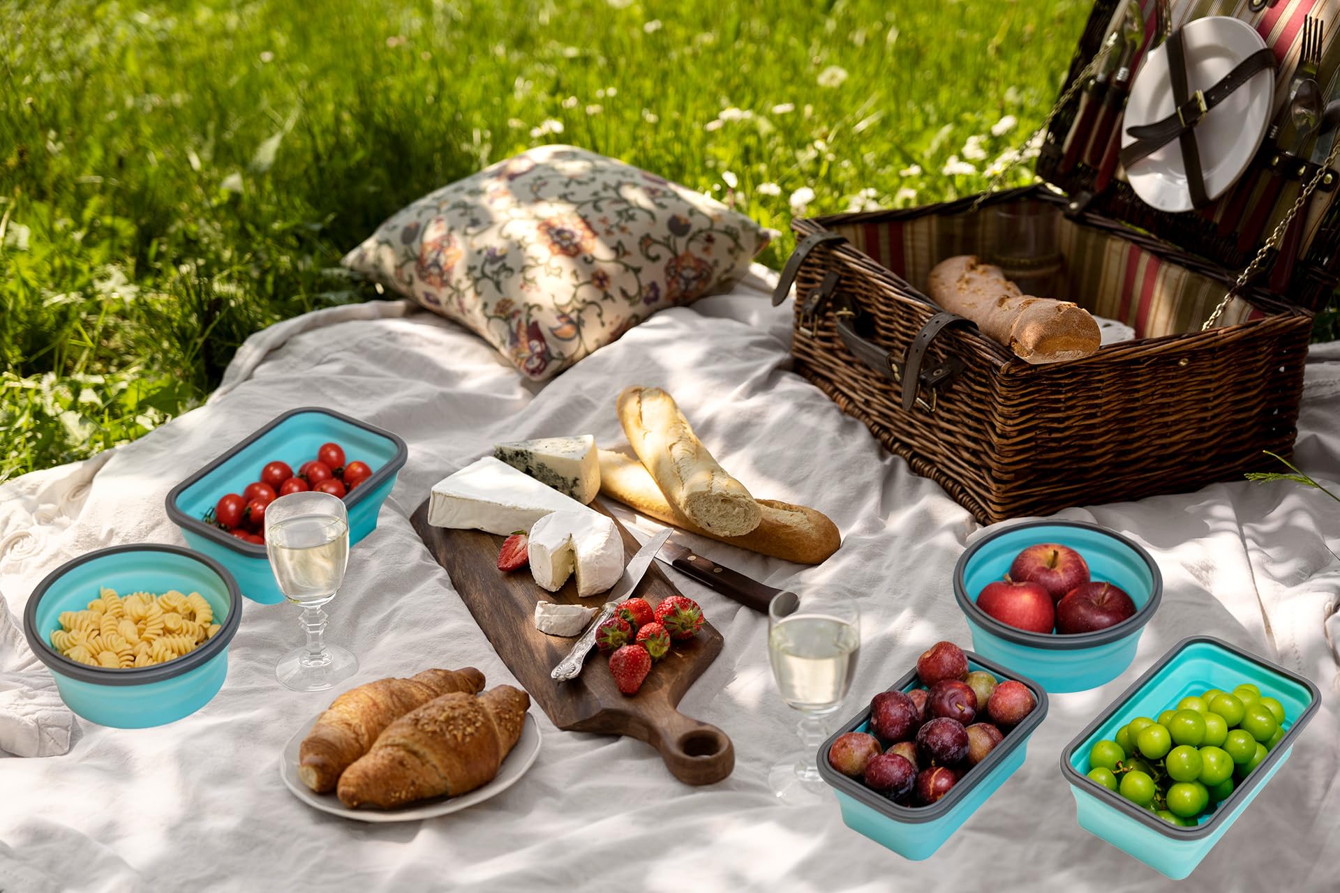 The foldable design allows each container to collapse flat when empty, saving up to 55% storage space in cupboards, backpacks, RVs and suitcases.