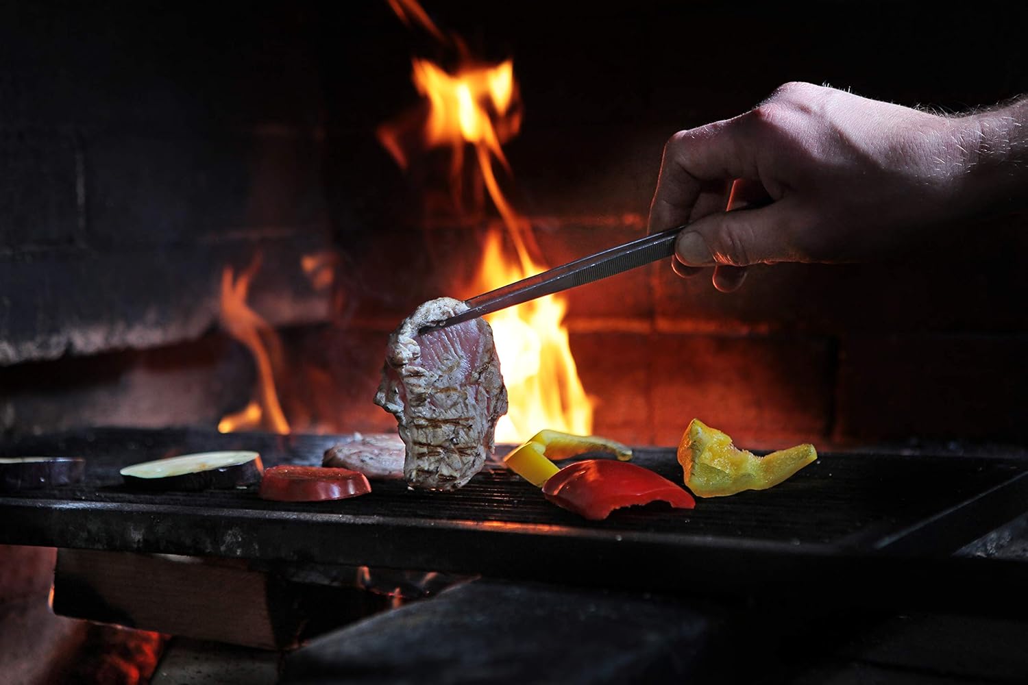 Straight-shape design allows precise gripping and turning of meat, vegetables and delicate foods.