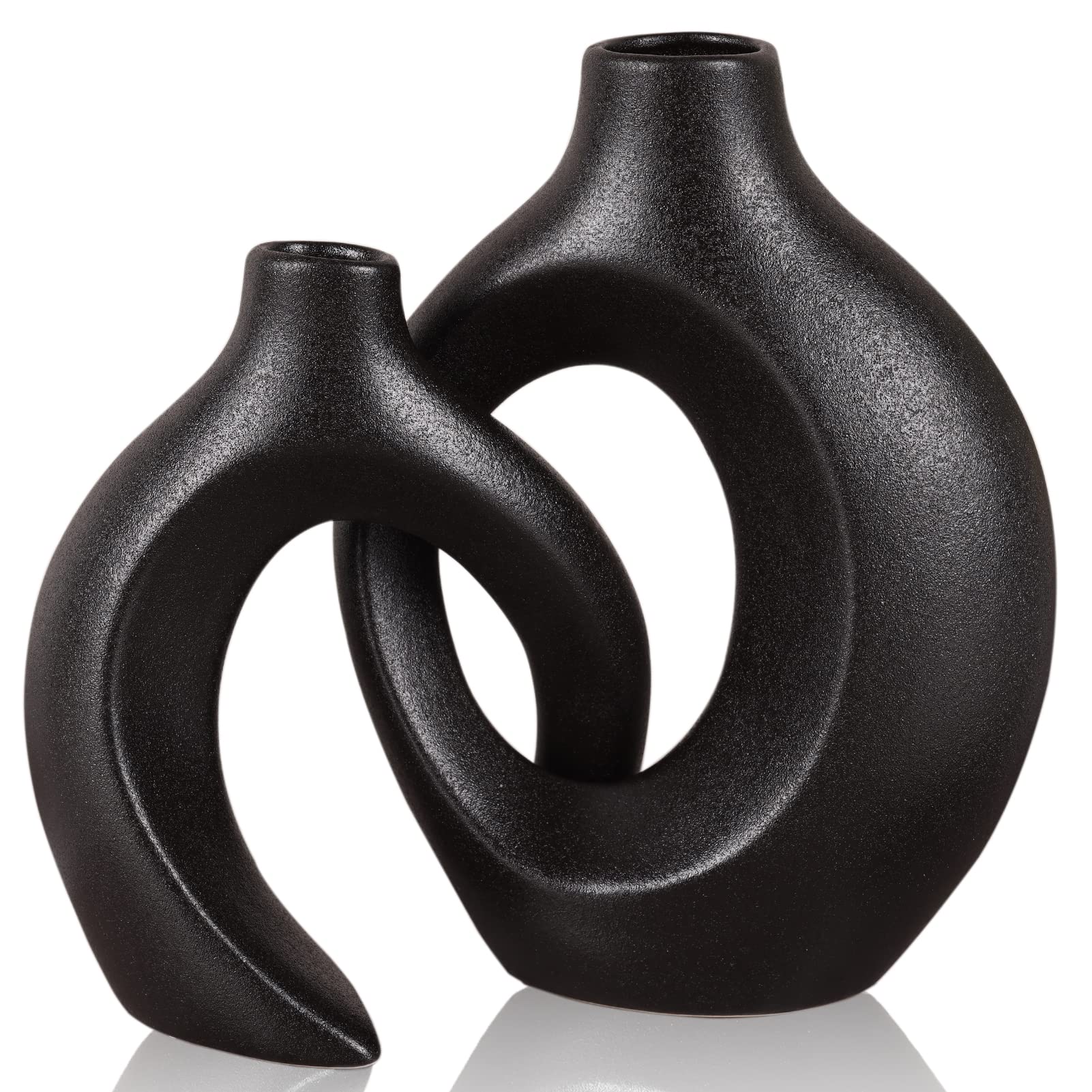 Modern Black and Gold Ceramic Donut Vases Set of 2 | Decorative Round Hollow Vases for Weddings, Entryway Decor, Bookshelves, Mantelpieces, and Table Centerpieces (B+G)